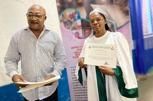 TODAY THE 17TH, OF DECEMBER, 2022, WE ARE PLEASED TO ANNOUNCE THAT THE 8 GIRLS, 4 INSTRUCTORS, WHO ENROLLED IN VOICES OF CHILDREN FOUNDATION INC, ONLINE VOCATIONAL TRAINING PROGRAM WILL BE GRADUATING TODAY. ON THIS GRADUATION DAY, THEY WERE ALL PRESENTED WITH THEIR CERTIFICATE OF COMPLETION BY THE VICE PRESIDENT OF VOICES OF CHILDREN FOUNDATION INC, MR. MARTIN WUNO FROM THE USA.